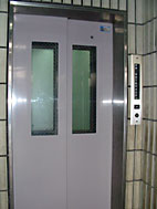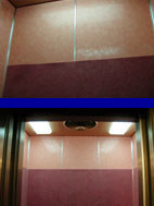 写真左 ■93年製エレベータ 壁ダイノックフィルム貼替施工例